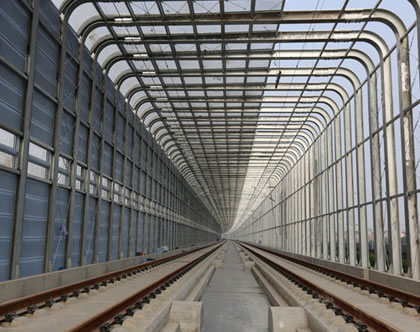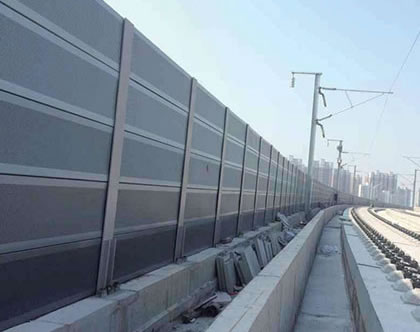 鐵路聲屏障也成為鐵路隔音墻,高鐵聲屏障,它是根據當前高速鐵路列車運行速度200km/h以下產生噪音設計的*種聲屏障。此類產品的設計已較為充分地考慮了高架高速道路、城市輕軌、地鐵的風載、交通車輛的撞擊安全和全天候的露天防腐問題。